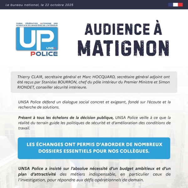 UNSA Police défend un dialogue social concret et exigeant, pour que la réalité du terrain guide les décisions.